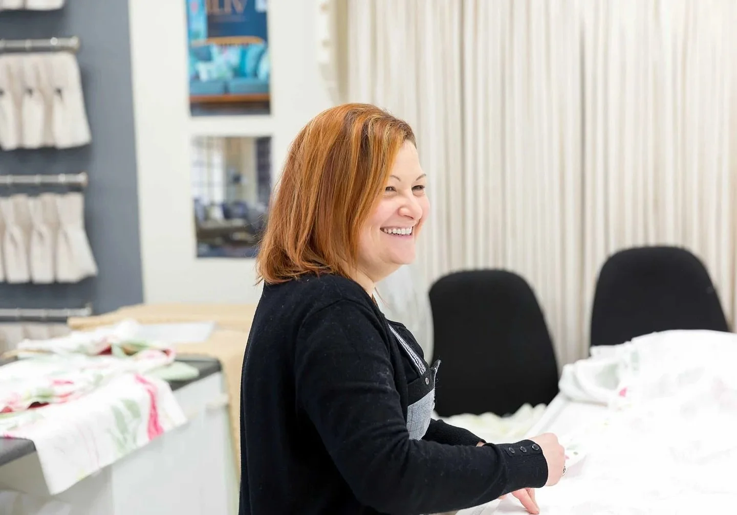 With over 20 years’ experience, Lesley James is known for creating beautifully designed, handmade curtains, blinds and soft furnishings. At her showroom + workroom in Penclawdd on the Gower peninsula she welcomes both private and commercial customers from Gower, Mumbles, Swansea, and the south-west Wales area to discuss their individual requirements.